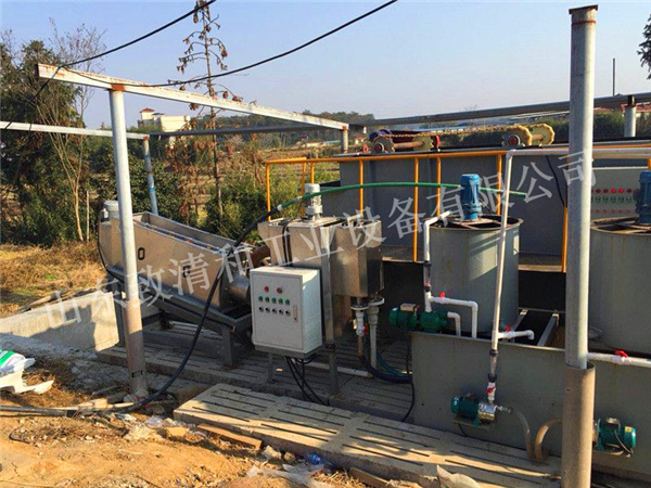 养殖污水由养殖场出来后流经格栅、格网,,,经格栅、格网除去大部分体积较大的杂物后,,,然后通过泵提进入粪便脱水机挤压,,,将废水实现固液疏散;;;脱水机出水自流进入调理池举行水量水质的调理;;;调理池中污水用泵定量的提升至气浮机中,,,使用气浮机将细小悬浮物通过物化加药方法倾轧系统